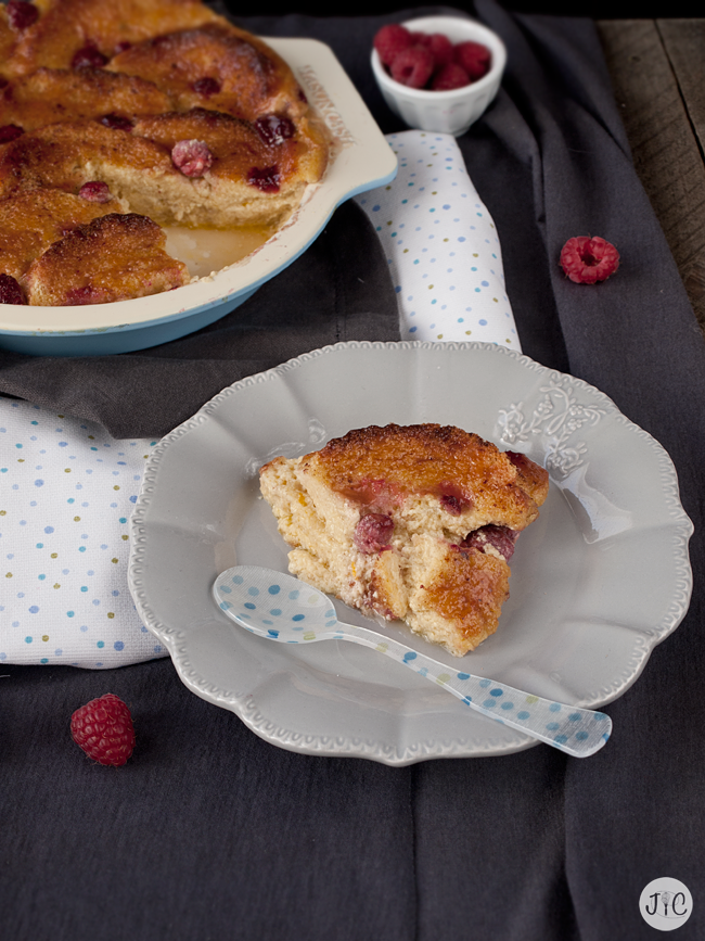 Yo me he decantado por los frutos rojos. Ya sabéis que no me gustan mucho las pasas (por no decir nada) así que he tenido que buscar alternativa y las frambuesas me parecían la mejor opción. El sabor ácido de las frambuesas con el sabor a crema pastelera o natillas del pudín queda maravilloso, a lo que le añadí un pequeño toque de fresa con la mermelada. ¡Estaba alucinante!