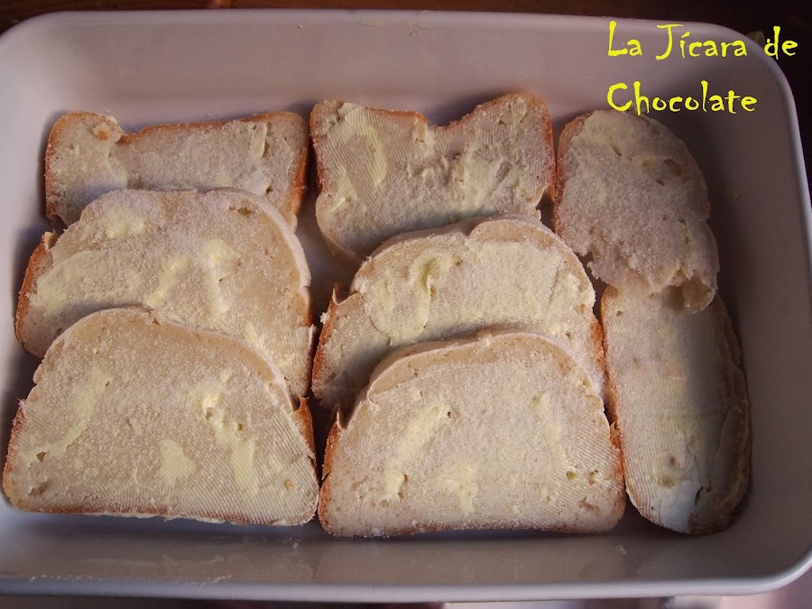 6. Bañamos, las rebanadas de la fuente, con la mitad de la mezcla de leche y nata (crema de leche) que teníamos reservada.