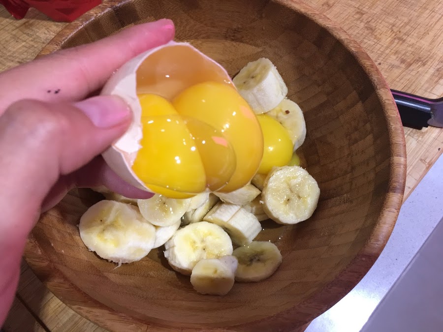 2. En el mismo bol añadimos los dos huevos, yo en esta ocasión he puesto unos huevos de dos yemas de gallinas felices que me trajo mi madre del mercado de nuestro pueblo, son algo más grandes de lo habitual, si no tenéis poner 2 huevos bien grandes o bien 3 pequeños.