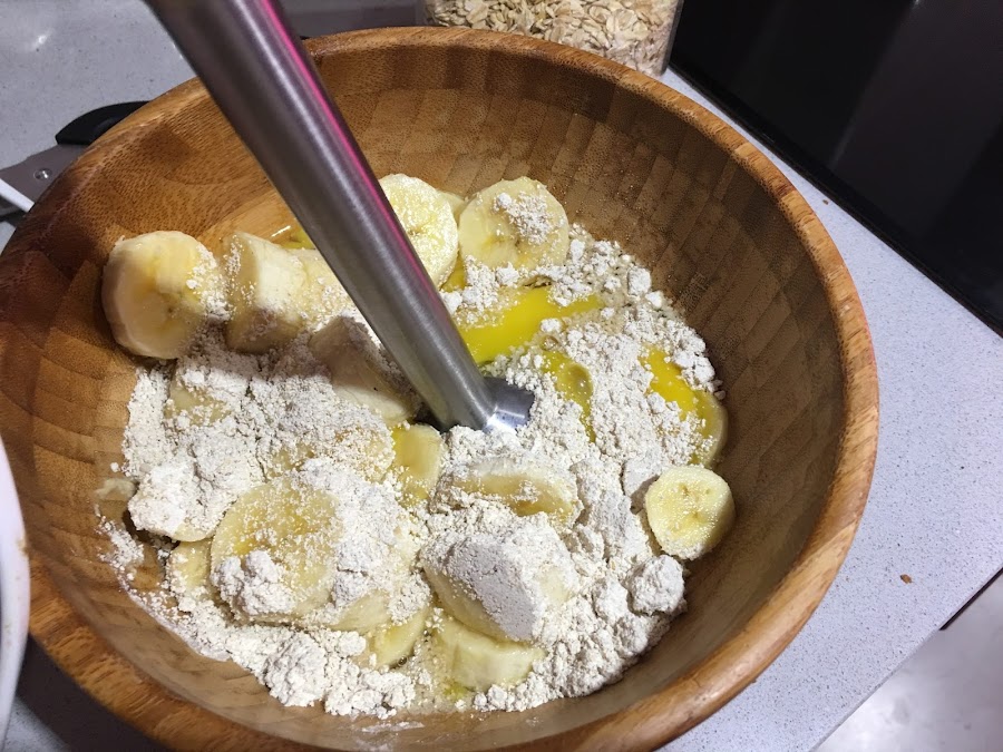 3. Añadimos los 35 de avena integral de eiralabs con sabor a jengibre. Esta avena molida es ideal para integral fácilmente a tus recetas, y sabor, le aporta un toque muy especial a este pudin, no contiene nada de azúcar, así que sigue siendo 100% fitness.