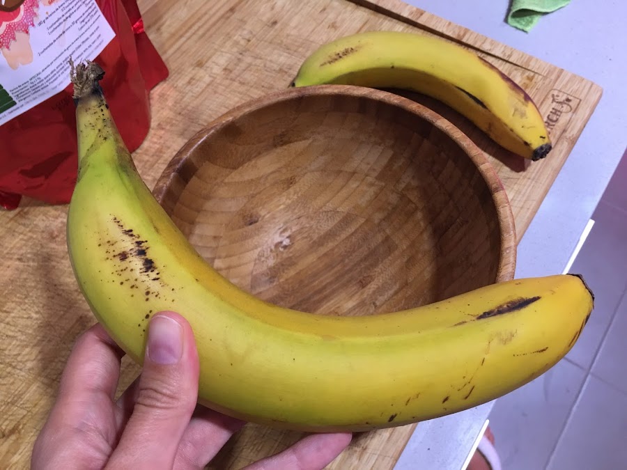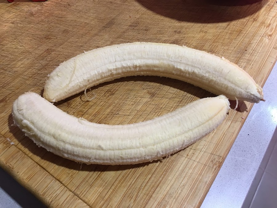 1. Precalentamos el horno a 180ºC. Pelamos y cortamos los plátanos a rodajas. Conviene que estos estén maduros, de esta manera conseguimos que el pudin esté dulzón sin añadir nada de azúcar.