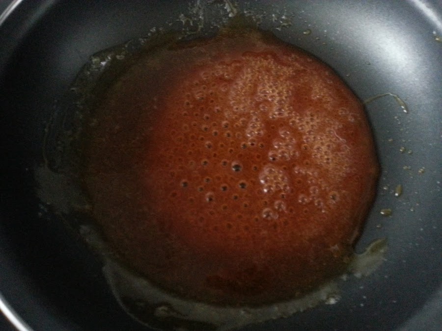 2. - Mientras, hacemos el caramelo, yo utilizo una sartén pequeña, podéis hacerlo en un cazo. Ponemos los 100 gramos azúcar a fuego medio, hasta que empiece a tostarse, y lo echamos en el molde.
