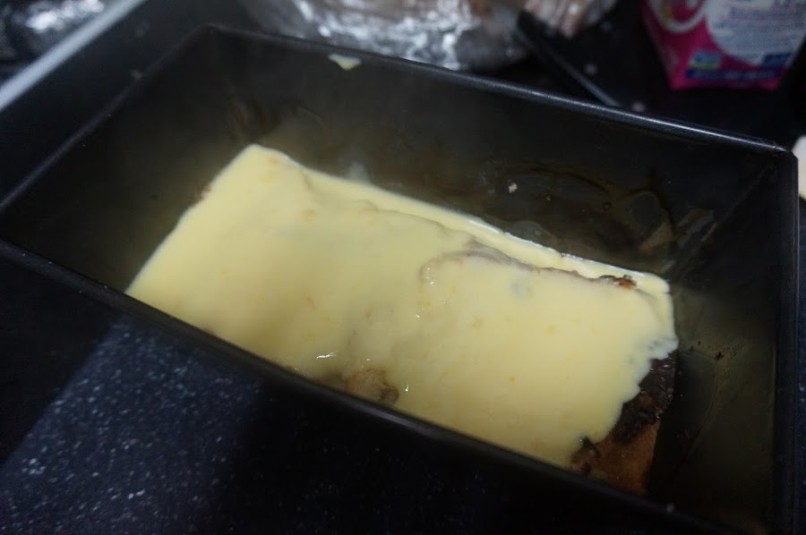 Ponéis otra capa de bizcochos y termináis poniendo todo el flan.