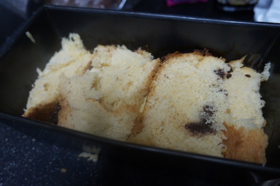 Yo además del panettone que llevaba trozos de chocolate, he puesto unas pasas y orejones cortados a trozos.