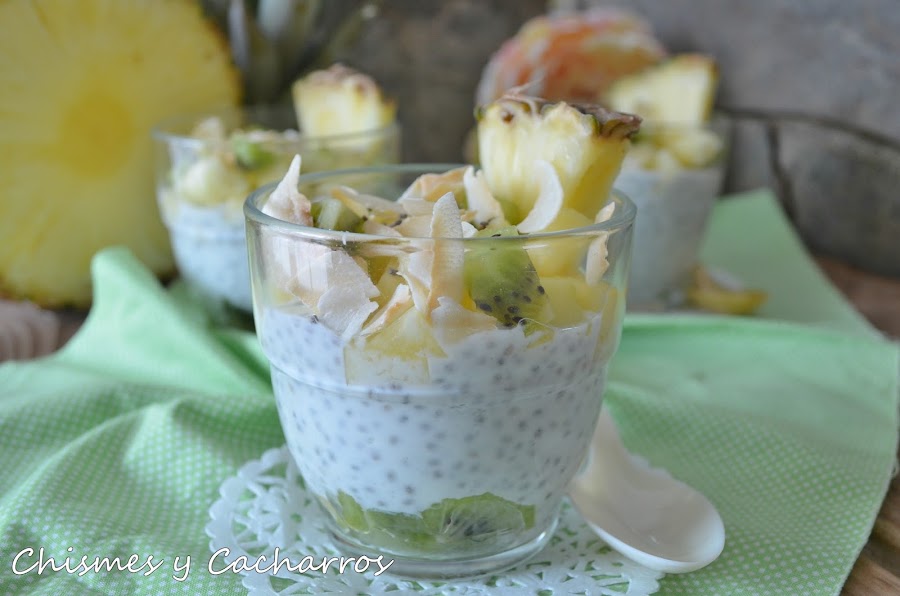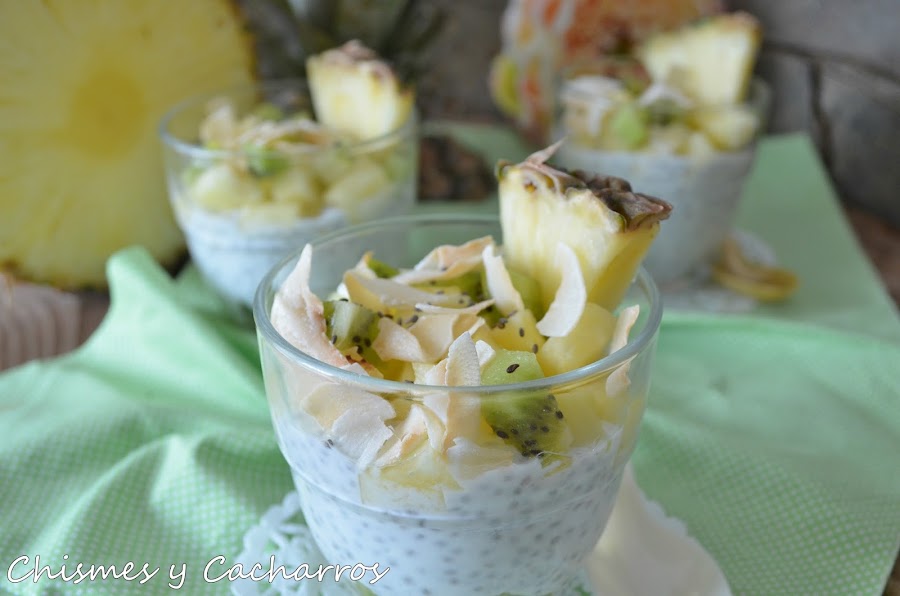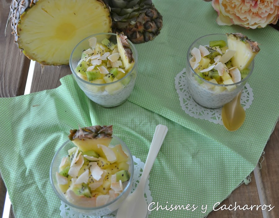 En esta ocasión con leche de coco y almendras, piña y kiwi. Bien fresquito está delicioso.