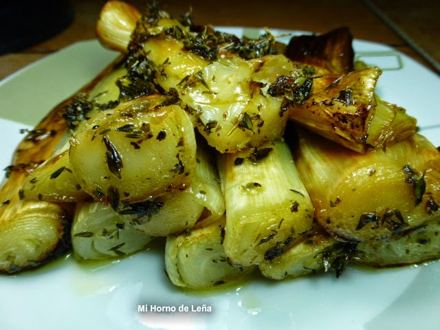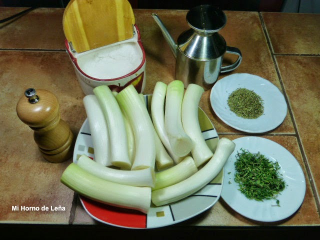 Ya limpios los puerros los ponemos en la fuente que irá al horno.