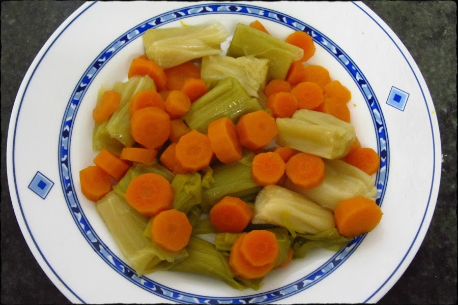 Pasados los 10 minutos sacar los puerros y zanahorias y disponerlos en un plato y dejar que vayan enfriando un poco.