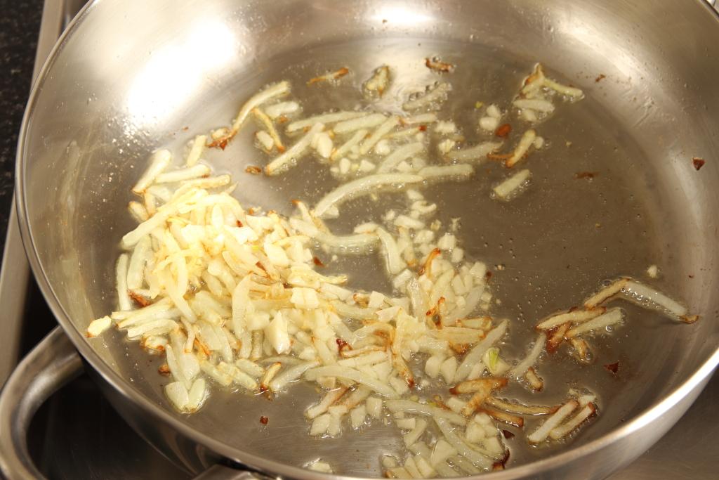 Limpiamos y picamos finamante la cebolla, reservamos. Limpiamos el ajo, picamos y reservamos.