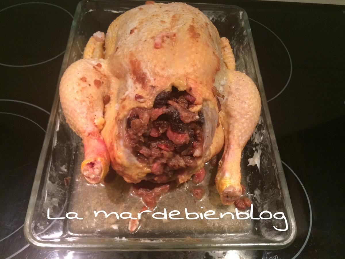 Juntar esto con un poco de la compota y la pastilla de caldo diluida en el coñac y meter la mezcla dentro de la gallina.
