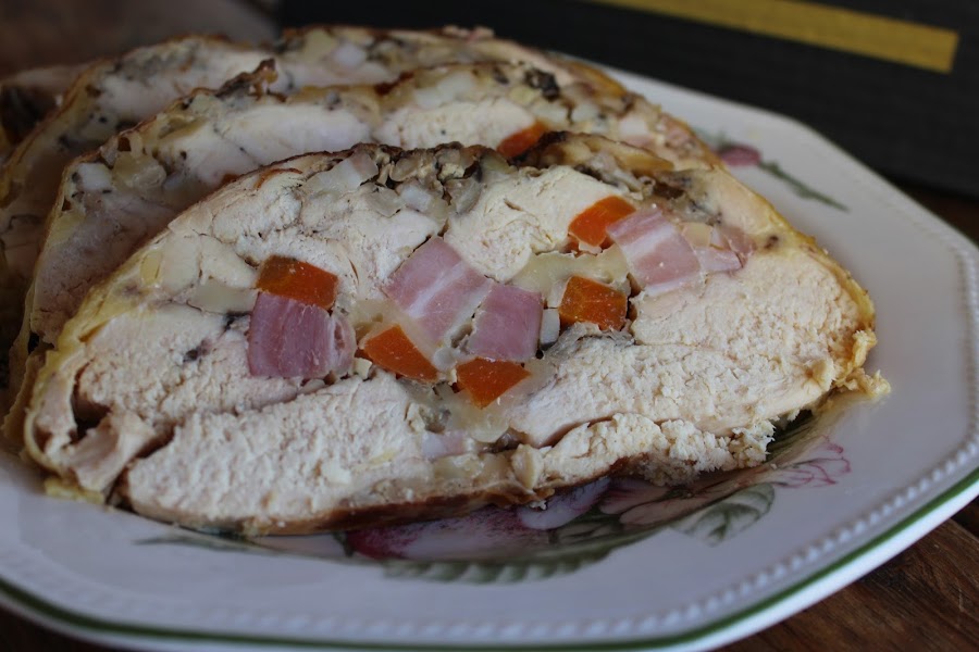 1—Deshuesar la pularda por dentro sin romper la piel. Video aquí.