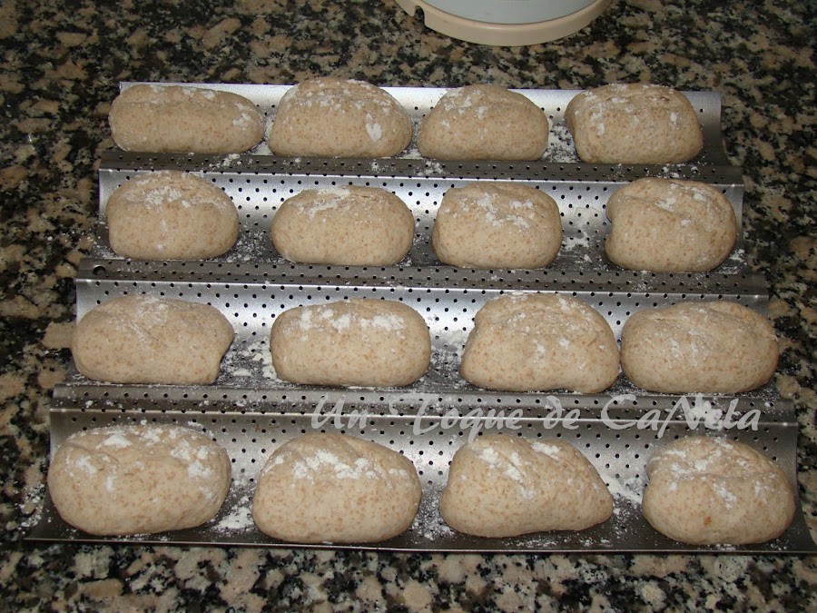 Formar las pulguitas y dejar en bandeja de horno. Las pongo en este molde para panes que va, pero que muy bien.