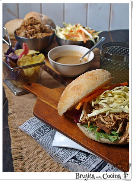 La receta de hoy aunque lleva muchos ingredientes y puede parecer de entrada algo difícil nada más lejos de la realidad. El pulled pork (cerdo desmigado) está muy muy de moda, de hecho el otro día en las Food Trucks por la feria chica de Palencia comí uno que estaba brutal, y de ahí me vino la inspiración. Pero he pensado hacerlo de pollo porque las piezas de cerdo que me vendían eran enormes y aunque pueda congelar me parecía excesivo, además el pollo se come bien y se desmiga mejor.