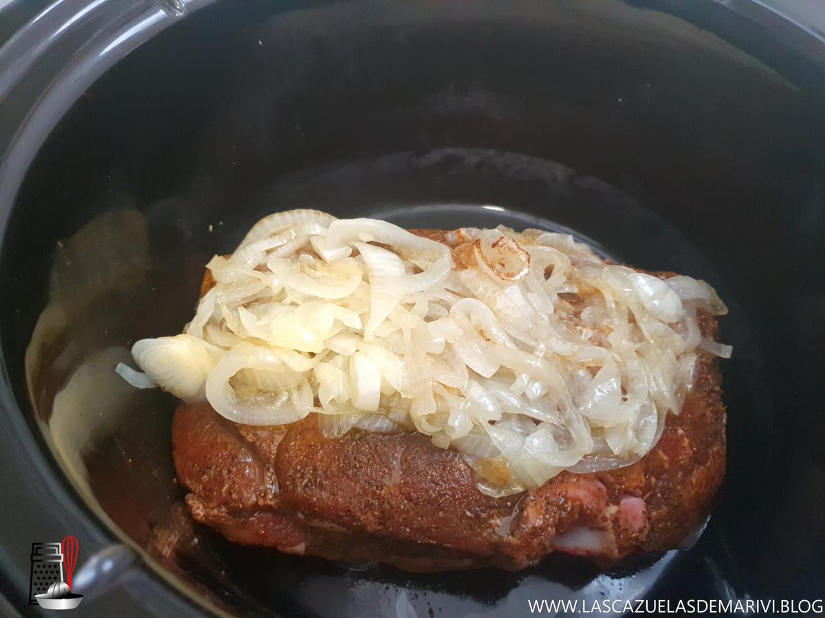 Poner la cebolla encima de la pieza de carne.