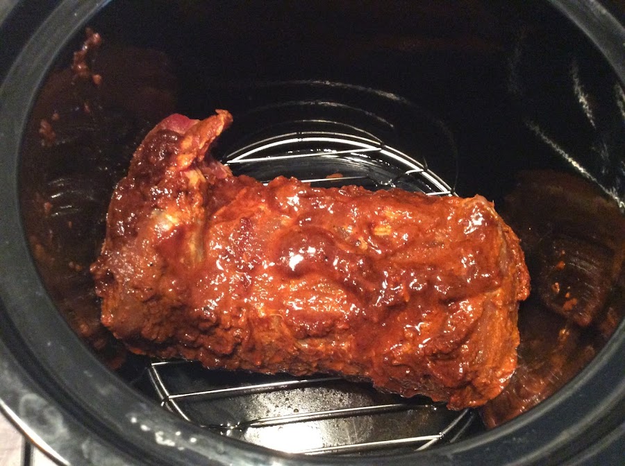Al día siguiente ponemos 50 ml. de agua en la cubeta slowpot, la rejilla de asados y encima la pieza de carne.