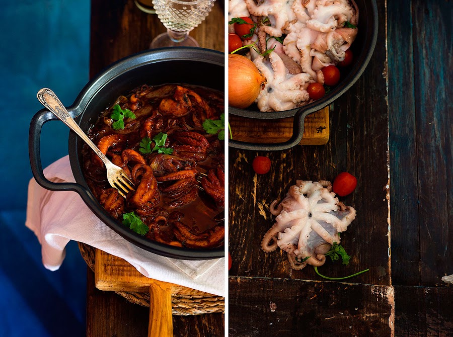 Tenía pendiente publicar estos pulpitos encebollados desde hace tiempo, por eso cuando hace unos días, paseando por el mercado de las Maravillas de Madrid, vi que los tenían en mi pescaderia de siempre, me animé a comprarlos. Se trata de una receta muy fácil de preparar, cuyo éxito está mas que garantizado, la única precaución que hay que tener, es la congelar los pulpos mínimo un par de días, para que se rompan sus fibras y descongelarlos el día anterior para que al cocinarlo no resulten duros.