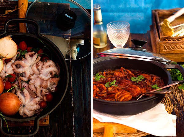En ésta ocasión he preparado éstos pulpitos encebollados en la cazuela baja de Monix , ideal para éste tipo de cocciones, también me resulta de lo más práctica cuando preparo algunos arroces, como éste Risotto con bacalao confitado. Espero que os guste la receta y que os animéis a hacerla.