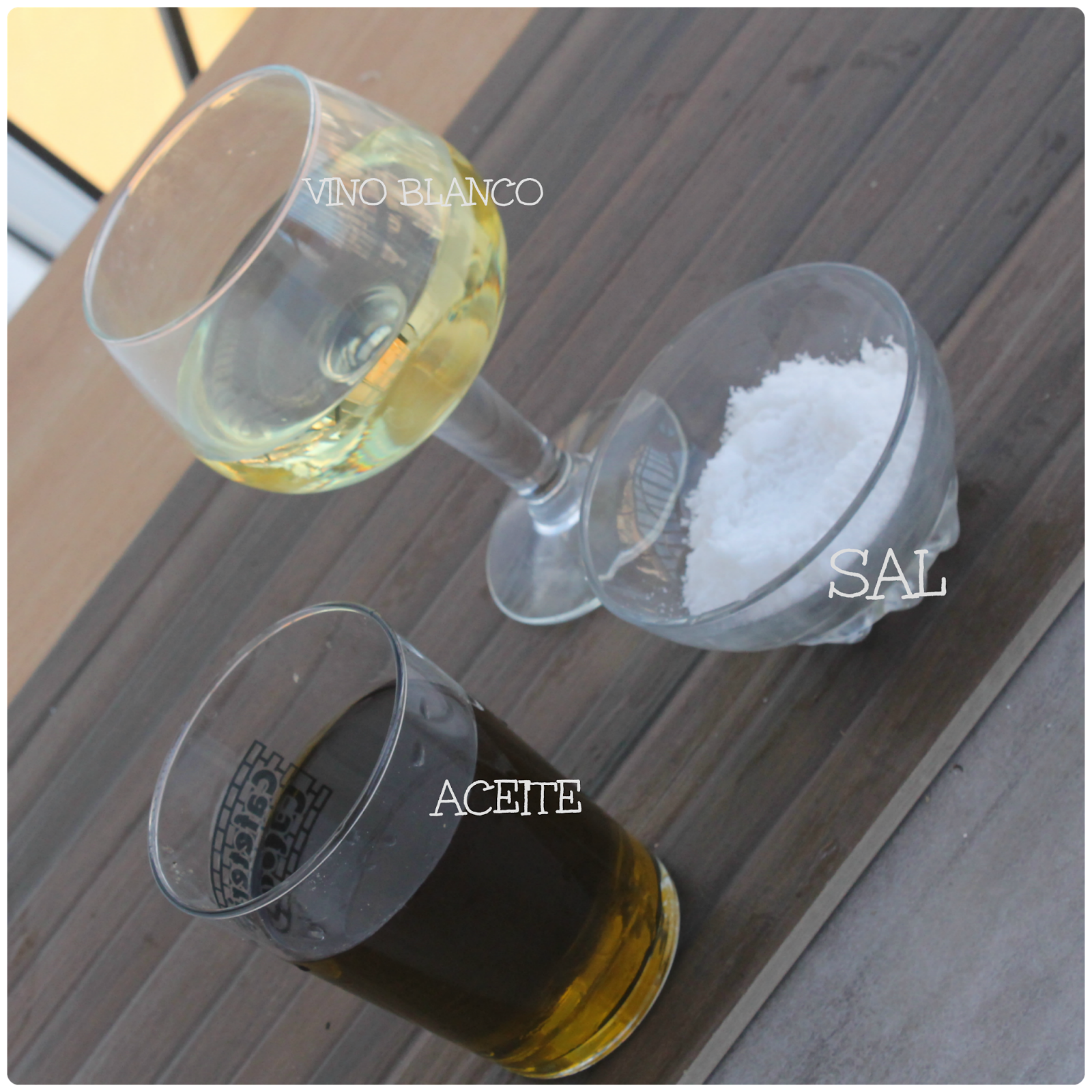 -Echamos sal , el aceite y el vino blanco por encima.