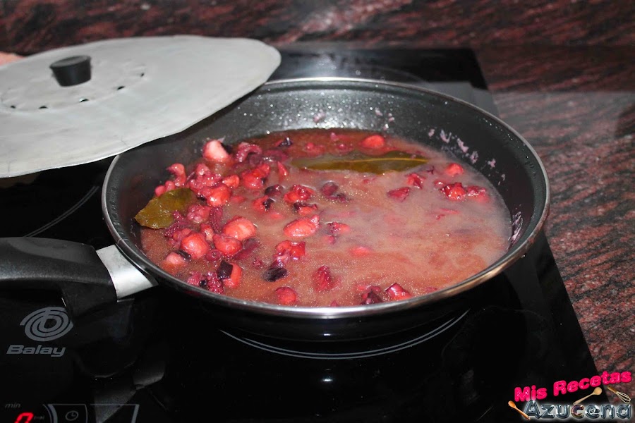 Pasado este tiempo añadiremos el vino, volvemos a tapar y lo volveremos a dejar otros 30 minutos más.