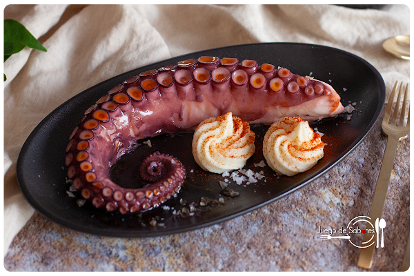 En toda la historia de la humanidad solo ha habido dos pulpos famosos. Uno, el que concibió la mente de Jules Verne que en su novela “Veinte mil leguas de viaje submarino” amenazaba con zamparse el “Nautilus”, el submarino donde viajaban los protagonistas. Su nombre era Kraken. Era pura imaginación del autor francés. El otro pulpo famoso se llamaba Paul y se dijo que era capaz de adivinar los ganadores de los encuentros del Mundial de Fútbol de Sudáfrica en donde, por cierto, ganó la Selección Española. Pura imaginación, también, o simple chamba, suerte o chiripa. Lo único cierto es que estos cefalópodos de ocho brazos o patas con ventosas son listos y su mimetismo les permite adoptar el color de las piedras submarinas para pasar desapercibidos y así escapar. El que no se nos escapó fue éste –bueno, únicamente una pata- que hemos cocinado con cariño acompañándolo de una parmentier de patata. Está sublime.