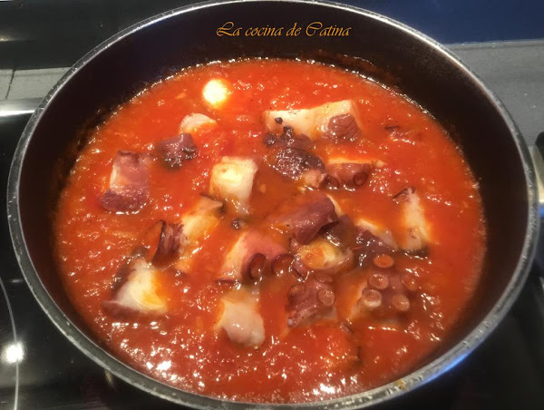 Añadimos el pulpo cortado en rodajas y dejamos cocer 5 minutos más para que se integren todos los sabores.