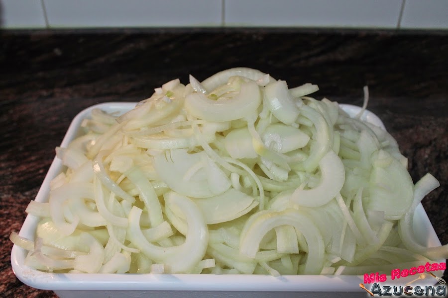 Mientras se enfrían los pulpos pelaremos las cebollas y las picaremos en juliana.