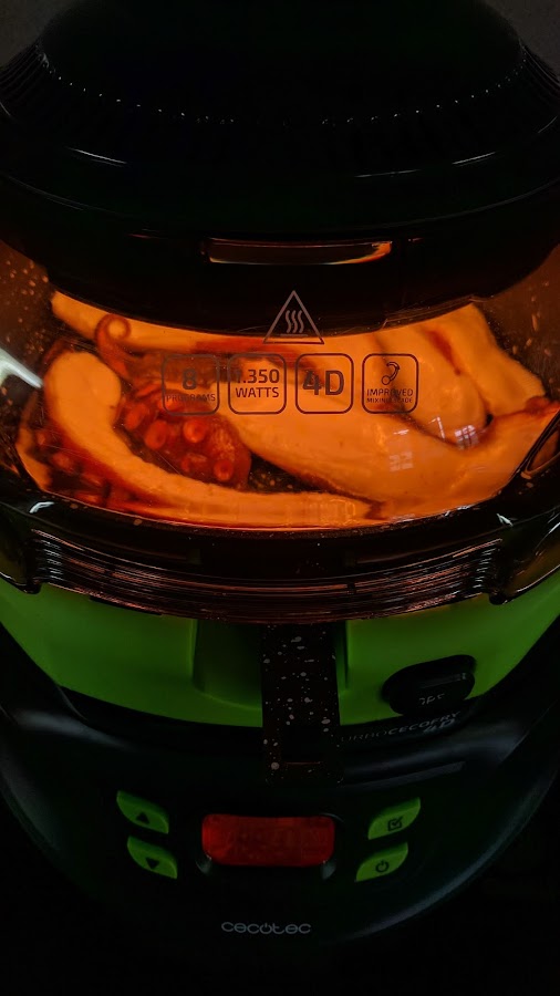 Está delicioso, con ese contraste de sabores. En plancha de hierro se hace aún mejor. Ahora bien el resultado en la Cecofry 4d buenísimo y sin humos ni olores ni salpicaduras.