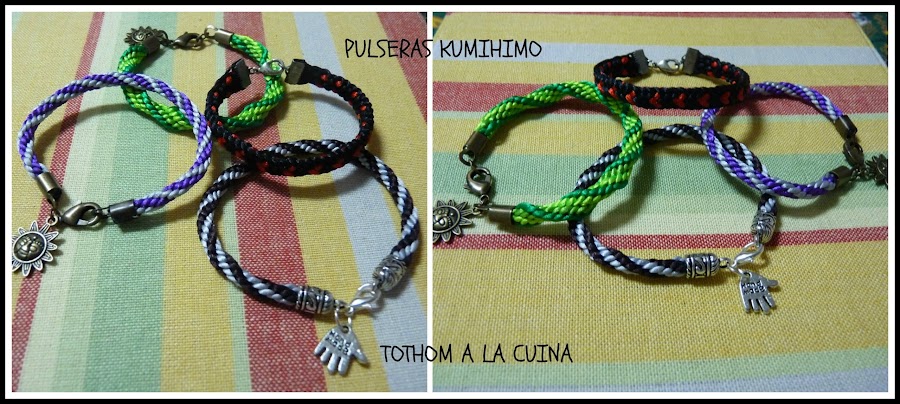 Una vez confeccionada la pulsera, la podéis finalizar con un nudo corredizo (mi asignatura pendiente, jijiiii) o con un cierre. Las podéis adornar con multitud de abalorios.