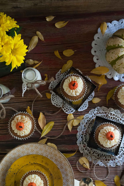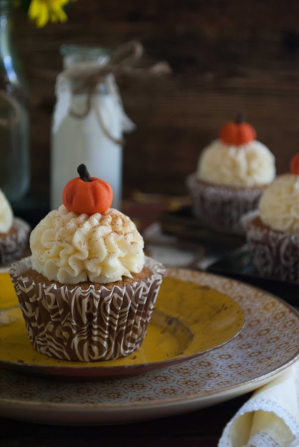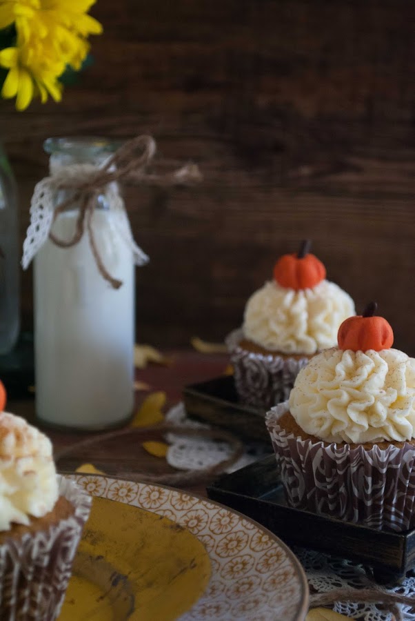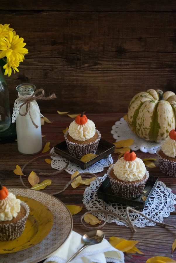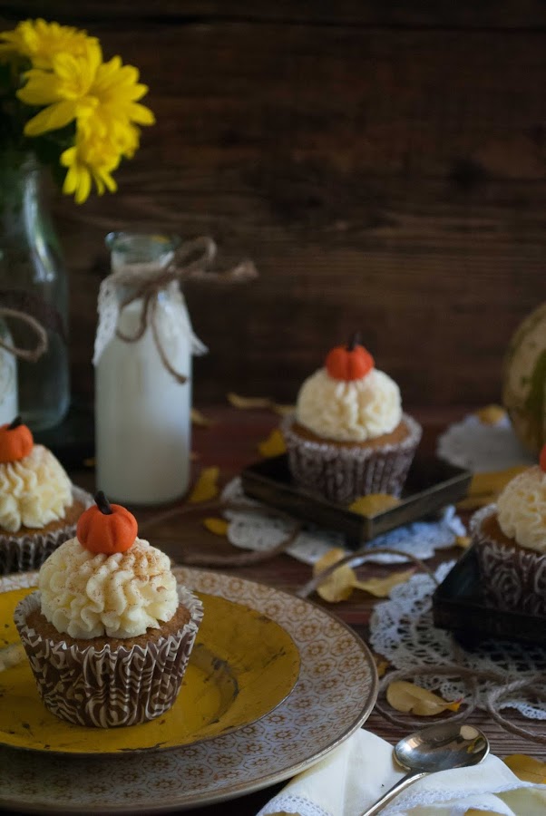 Con estos Pumpkin Cupcakes & Cheese Cream participo en el #Retoalfabetodulce que organiza mi amiga Ana de Cook the Cake, cuyo ingrediente elegido ha sido el queso.