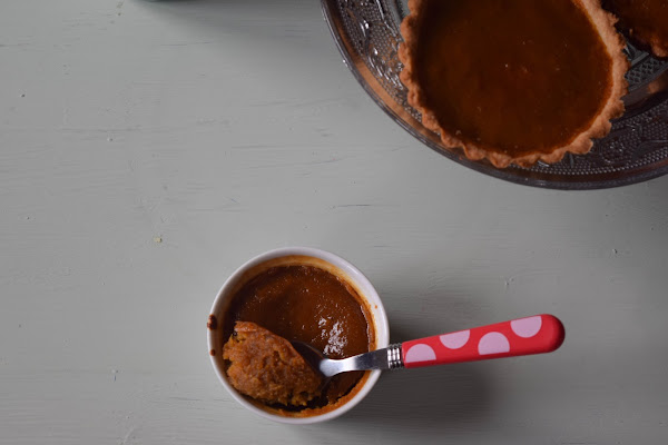 Pero mientras me toca hablar de otro pastel típico aunque en este caso de Estados Unidos. Desde que empecé a interesarme más en la repostería, antes de abrir el blog, tenía esta receta entre mis pendientes, pero al nunca me animaba a prepararla y eso que me encanta la calabaza y no es nada complicada de hacer. Es el postre ideal para celebrar este jueves thanksgivin como en las películas. En esta ocasión la he hecho en formato individual, me parecía que viviendo sola era una buena opción. Si quereís hacer la receta en un molde normal de 24 cm tendreis que doblar las cantidades.