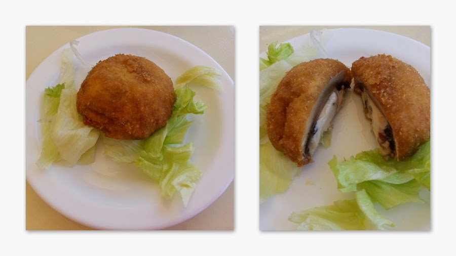 Cuando acabamos de comer, Jose nos invitó a probar la tapa que quedó en segundo lugar en la feria de la Tapa del año pasado, un champiñón relleno de jamón y queso que nos dejó gratamente sorprendidos.