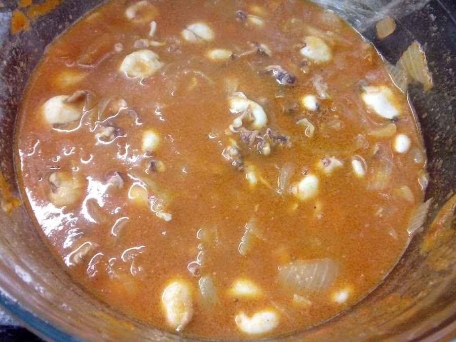 Abrimos de nuevo, removemos y finalizamos con 10 minutos más de micro para que la salsa reduzca, ya que la puntilla suelta agua.