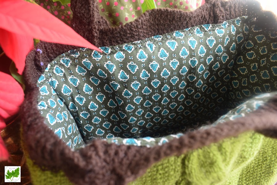 Todas las que hacemos labores y manualidaddes nunca tiramos ni un trocito de tela , ni de hilo, ni nada que pueda ser reutilizado; así, el forro interior es tela procedente de una falda de verano que una de mis hijas ya no se ponía. Como se dice por aquí:"Todos los santos tienen su novena" y esta tela le llegó el momento de volver a lucir. La guata que utilicé para dar cuerpo al bolso también es un resto de otras labores.