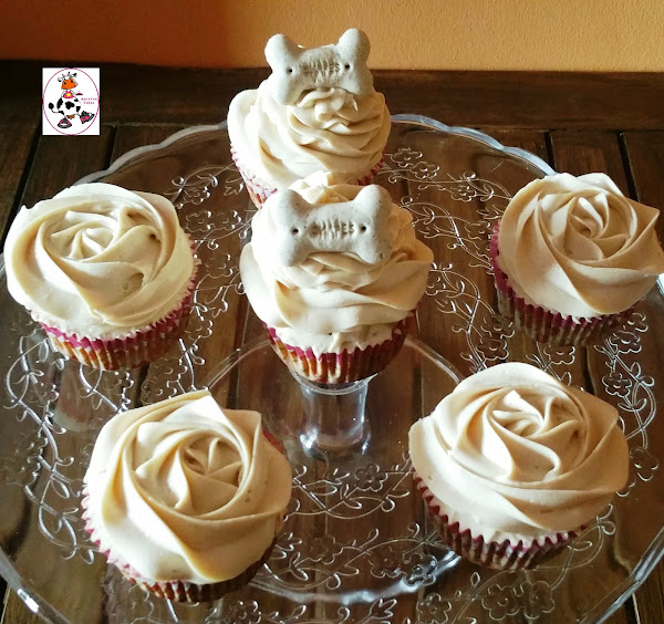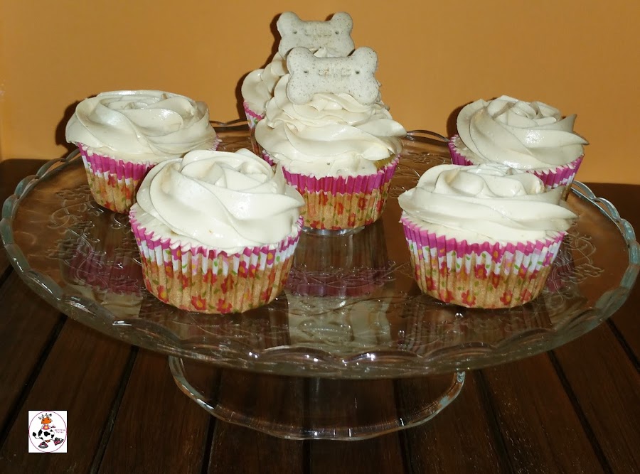 Decoramos nuestros pupcakes y yo a dos pupcakes le puse unas galletitas de perro. El resto de pupcakes puede ser comido por humanos jejeje.