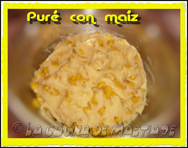 En una sartén con un poco de aceite y mantequilla saltear ligeramente el maíz , sazonar con una pizca de sal. Unir el maíz con el puré y mezclarlo bien para que quede una mezcla homogénea de puré y granos de maíz.