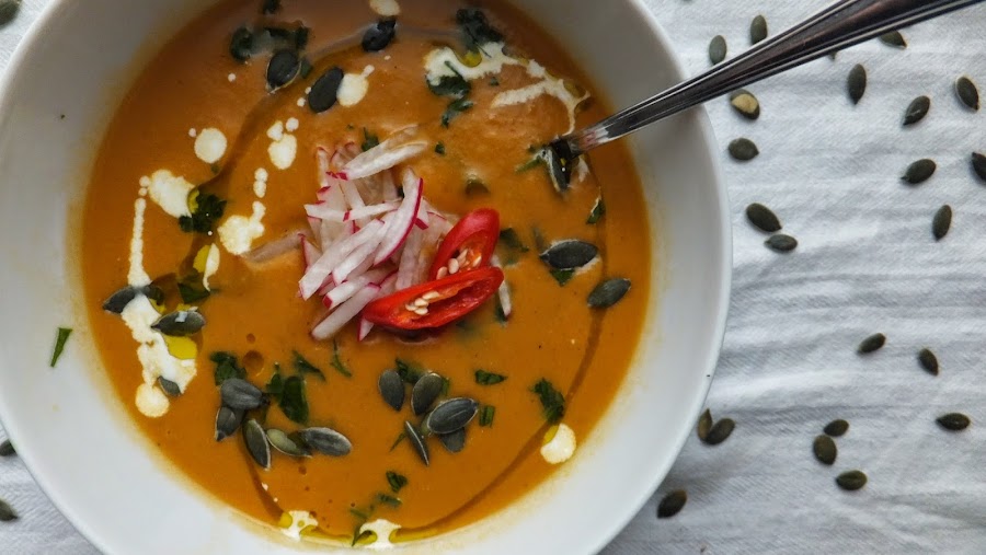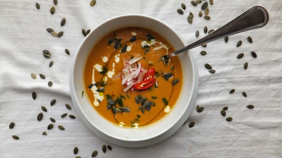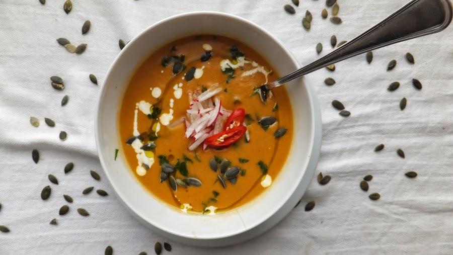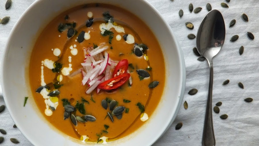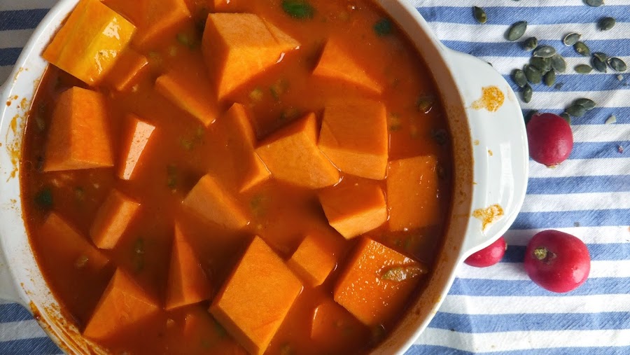 {RECETA DE PURÉ DE CALABAZA PICANTE AL CURRY ROJO CON LECHE DE COCO}