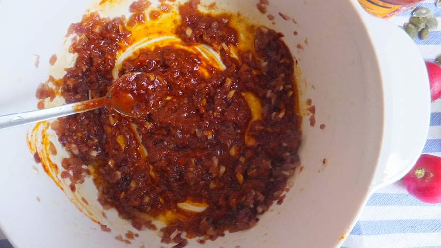 *La salsa de curry rojo se puede obtener en la sección internacional de algunos supermercados y en tiendas especializadas en alimentos asiáticos. Es una salsa bastante picante que recomiendo usar con moderación a aquel que no sea amigo de éste.