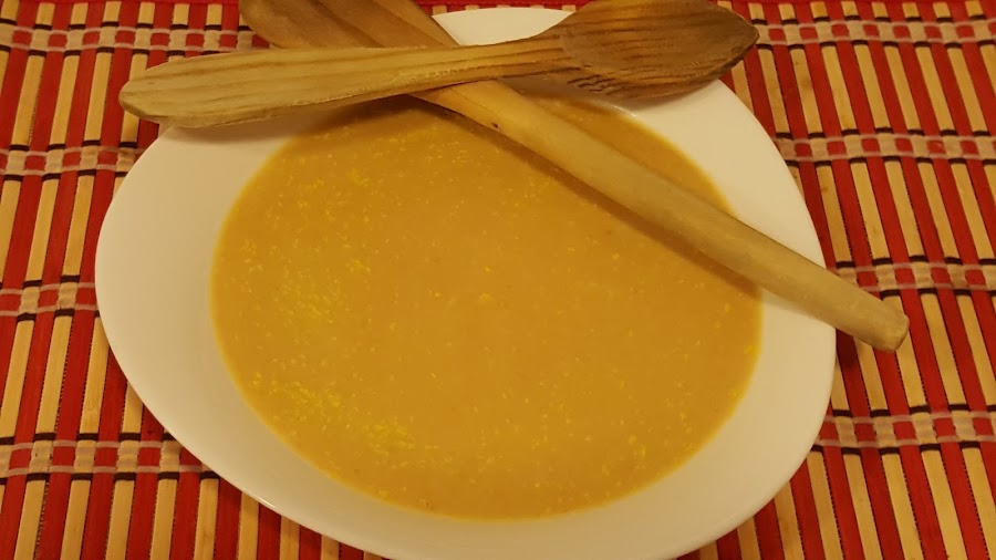 restos de cocido (una patata grande, un nabo, una chiribia, una rama de apio, dos carlotas, un puerro y trozo grande de garreta, aproximadamente 250 gramos y dos alas de pollo, sin las puntas y unos 300 gr. de caldo de cocido)