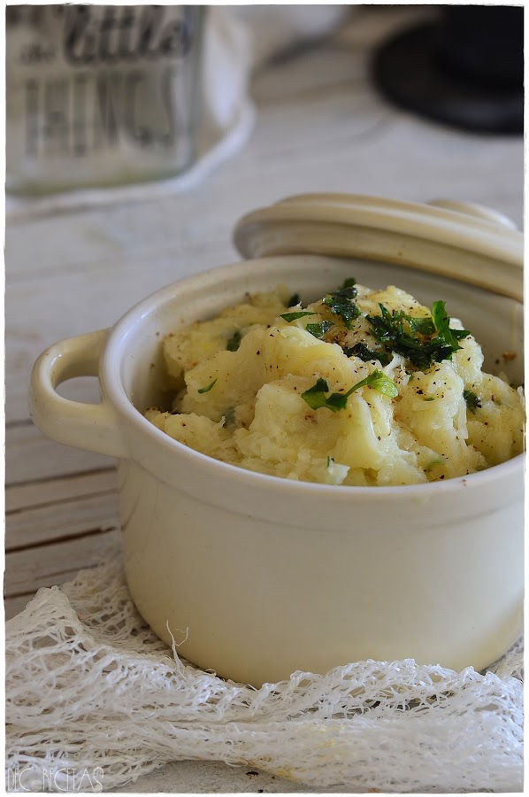 Si os atrevéis, os aconsejo no añadir patata y hacerlo integramente de coliflor. La textura es muy parecida y así, podéis incluso animar a los niños a comer este "puré de patata"...Seguro que no protestan! Y es que es perfecto como guarnición de carne y pescado, acompañando nuestros platos.