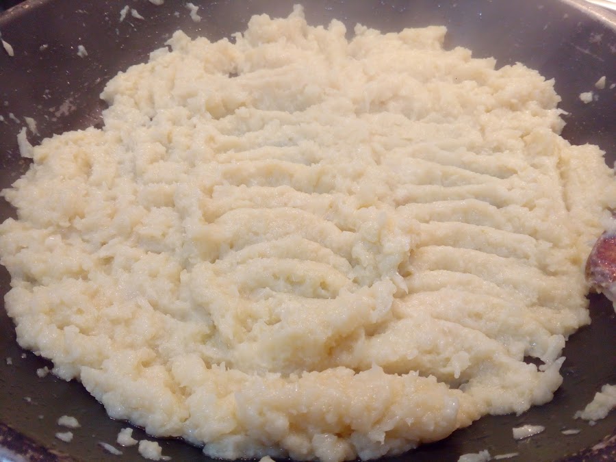 (Hay que dorar el puré uniformemente, con cuidado de que no se pegue y haga costra).