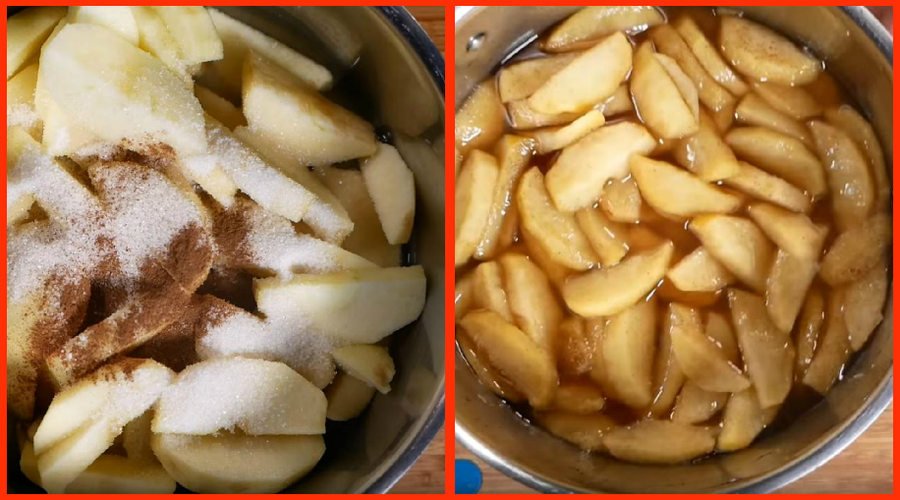 Corta y pela las manzanas. Pon los trozos en una olla y añade la canela, el agua y el endulzalte, en este acaso azúcar.