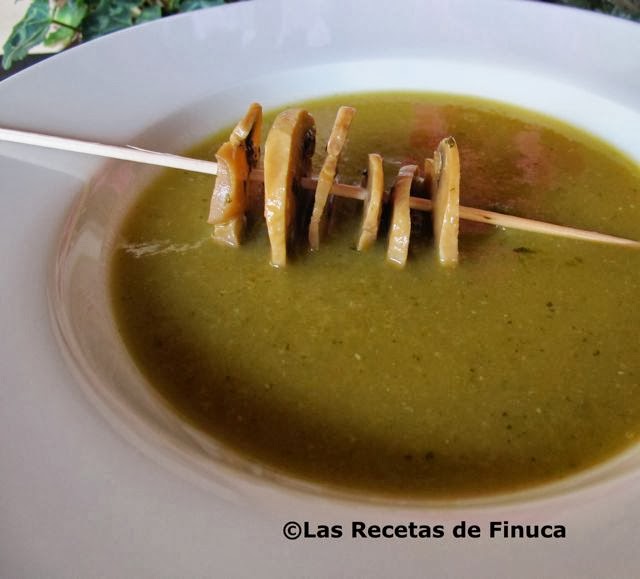 Como la receta que la gustó era ligera, vamos a preparar un sencillo puré de verduras que acompañaremos con champiñones al ajillo.