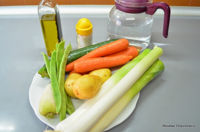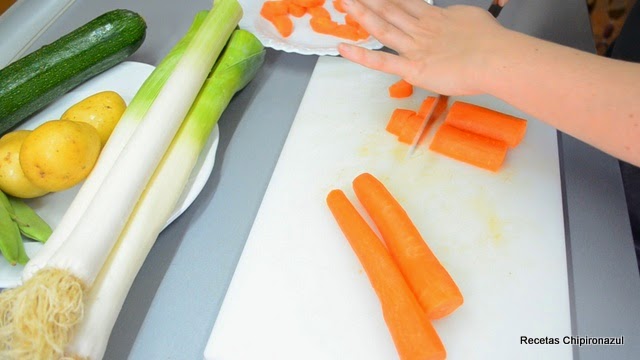 Trocea las zanahorias y los puerros.