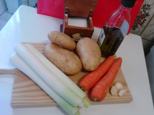 A la mañana siguiente cocinamos: lavamos y cortamos en cuadritos pequeños los puerros y las zanahorias, los ponemos en una fuente.