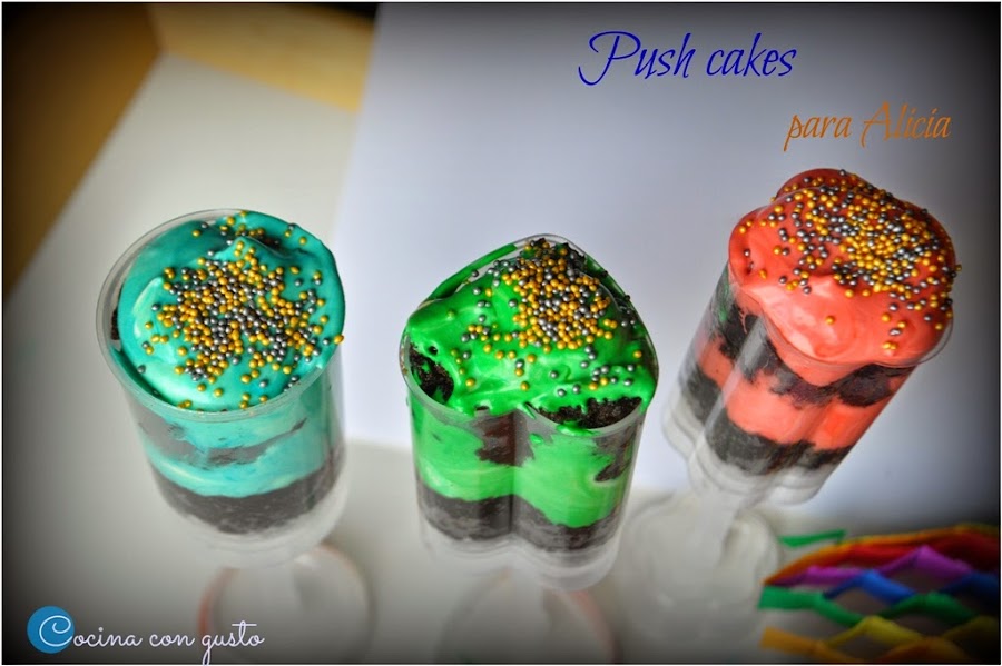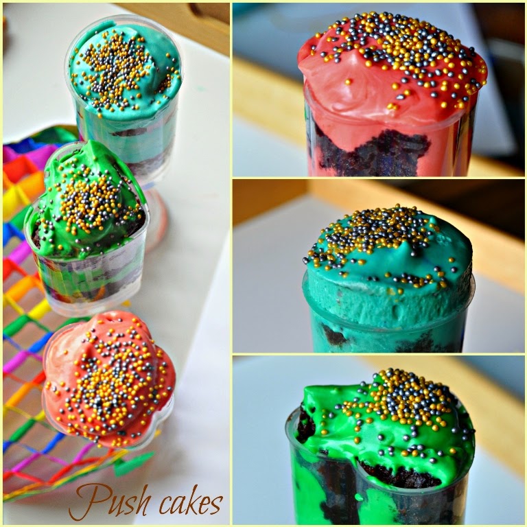 Me lié la manta a la cabeza y aproveché para estrenar mis moldes para PushCakes que quedan monísimos con colores vivos. Hice poquitos porque no hay que abusar pero dan mucho juego.