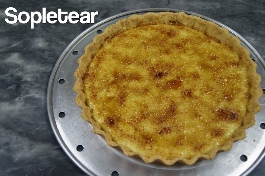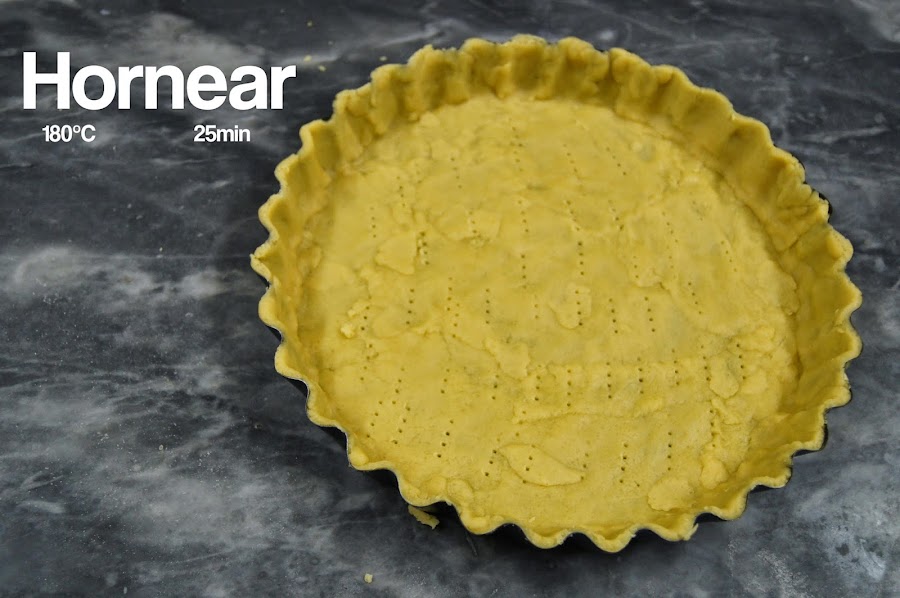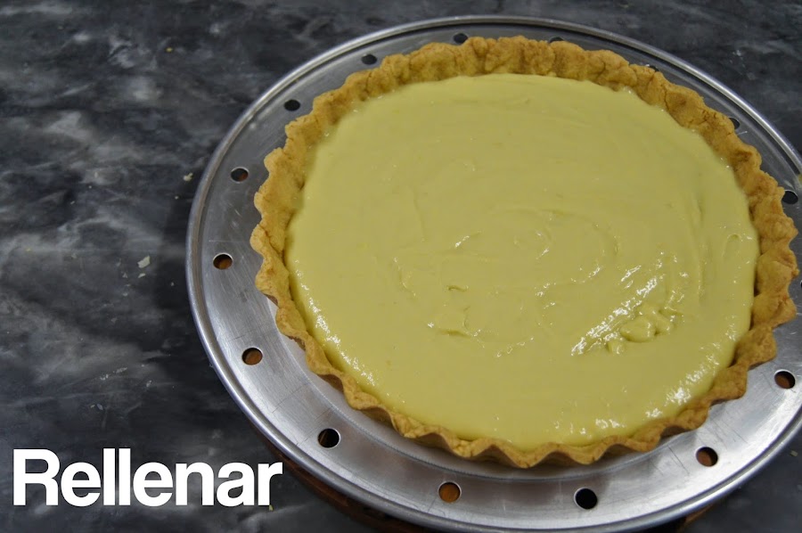 Esta es otra receta del libro de Christophe Felder. Es fácil de hacer: la masa se trabaja rápidamente y el relleno se prepara casi igual que una crema pastelera, solo que no lleva leche. Este pye no queda muy dulce y es perfecto para comerlo frío (una vez rellenado, debe mantenerse en la refrigeradora). Se prepara en un molde de 24 cm de diámetro y dependiendo de que tan alto sea, se puede preparar el doble del relleno. Para terminar, se puede preparar un merengue (como este) o, como indica Christophe Felder, se puede meter el pye en la congeladora por 10 minutos, luego espolvorear azúcar rubia por encima y sopletearlo, como yo hice.