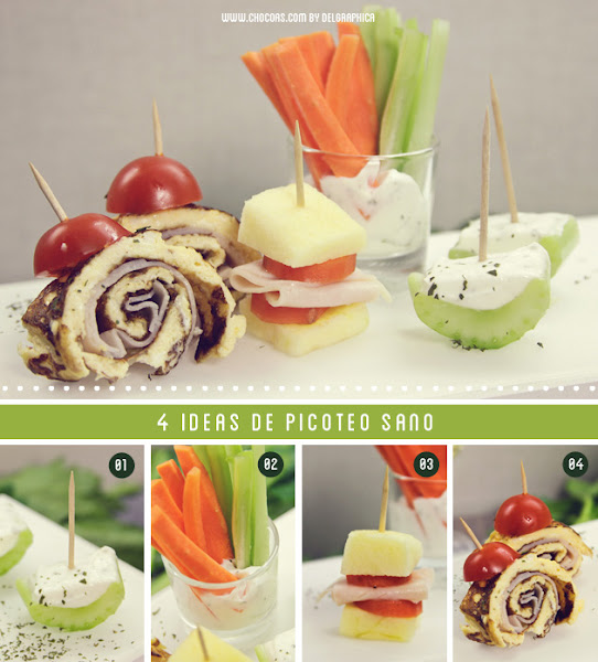 Pero tranquilos que con todos los alimentos de la primera lista podemos hacer un montón de mezclas, y pequeños aperitivos que harán la delicia de cualquier mesa. Estos alimentos también sirven para picar entra horas. Se pueden preparar y guardar en un táper en la nevera. Siempre a mano por si nos apetece picar algo sano y no caer en la tentación de la bollería. Os propongo 4 ideas de picoteo sano: