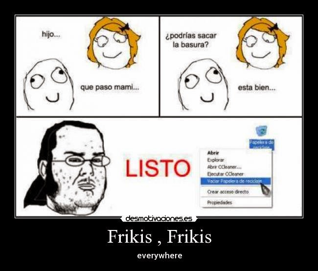 Yo no sé vosotros, pero yo he tenido que recurrir a la wikipedia para saber que es un friki porque por mucho que cuando la he escuchado y he querido encontrar el significado no lo he conseguido. Lo único que me quedaba claro es que, el Friki es siempre otro. O sea, primera lección, lo primero para ser un friki es negarlo.