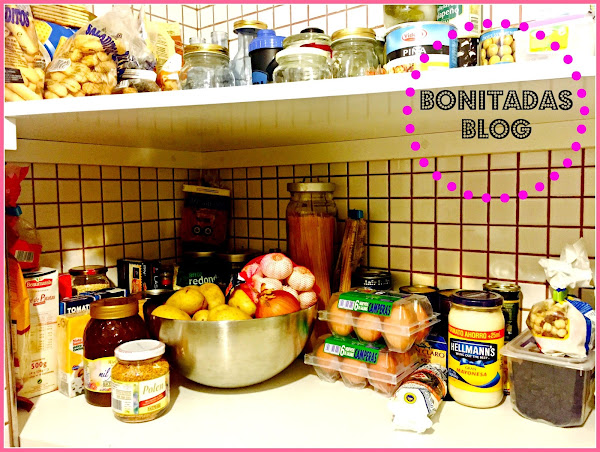 En cuanto a mi despensa, en ella no falta pasta, arroz, legumbres (principalmente lentejas y garbanzos), atún, más huevos, patatas, quinoa, miel, polen de abeja, algunos frutos secos (avellanas tostadas, pasas, cacahuetes) y recursos rápidos como las tortillas de trigo para las fajitas o las latas de champiñones. Y el puré de patatas de sobre que, lo reconozco, me encanta -pero no lo hago casi nunca-.