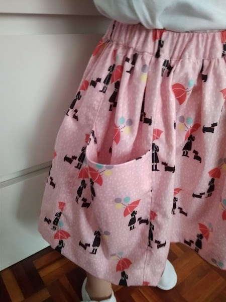 Pero no tenía tiempo para andar a buscar telas que contrastasen así que decidí hacer toda la falda con la misma tela.