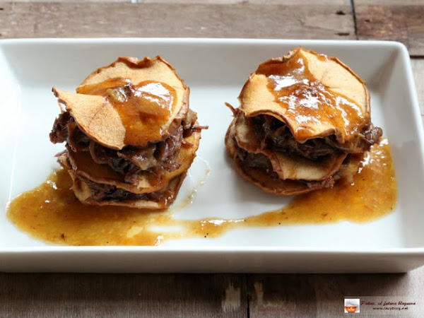 ¿Qué os parece este milhojas hecho con rabo de toro? Mirad la receta que es fácil, elegante, barata y deliciosa.